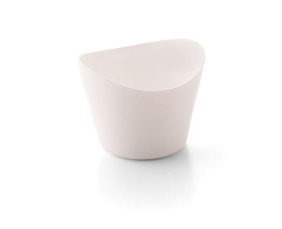 Ergonómica y versátil las piezas de la gama permiten múltiples combinaciones de color y forma (encaje del vaso sobre el plato con el fin de sujetar los dos elementos en una sola mano. El platito plano con platito hondo …).