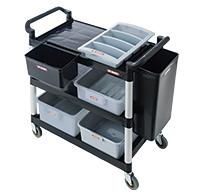 Se usan para recoger mesas (levantar mesas), almacenar/transporta vajilla y menaje y cuentan con asidores laterales para facilitar el transporte.