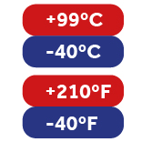 Temperaturas de – 40ºC a +99ºC / -40ºF a +210ºF
