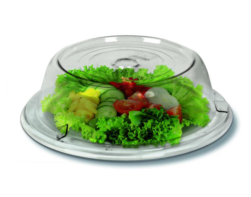 El Cubreplato de diámetro 290 mm.en policarbonato Araven es irrompible y protege el alimento de posibles contaminaciones externas manteniéndolo cubierto hasta el momento de servicio. Además en cocina permite apilar varios platos optimizando el espacio hasta el momento del servicio.