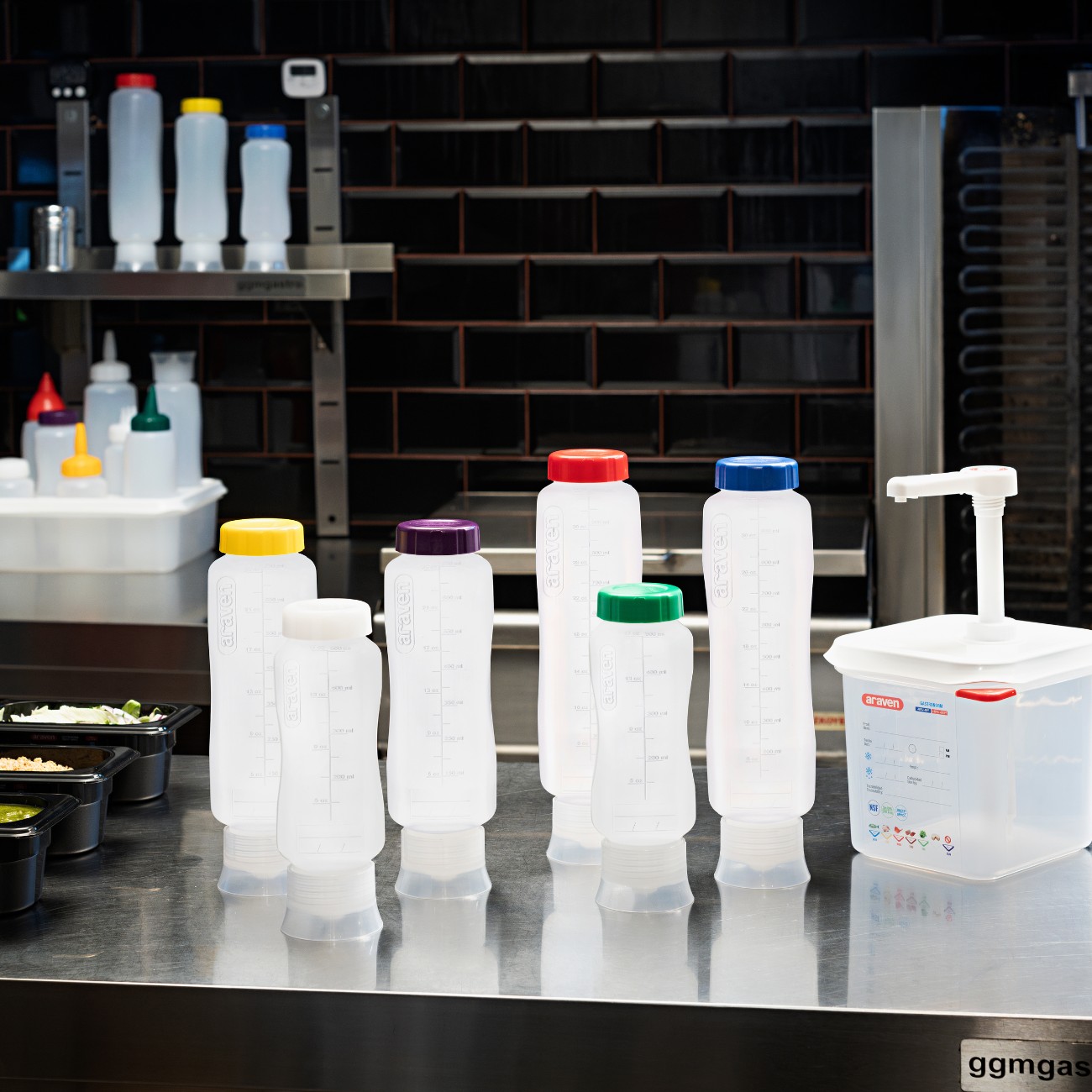 El dosificador FIFO FAST Araven 45 cl. es una solución para dispensar, de forma rápida, condimentos y salsas como mayonesa, mostaza o kétchup. Esenciales en Fast Food, Food trucks, Dark Kitchen y Take away.