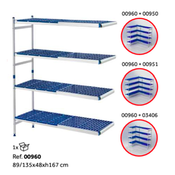 Its design takes into account rigorous Food Safety and hygiene standards. The quality of the materials, such as polypropylene (PP) and anodized aluminum, makes them unalterable in humid conditions and fully suitable for use in the described environments. Its perforated shelves, made of polypropylene, promote air recirculation, improving the preservation of stored products.