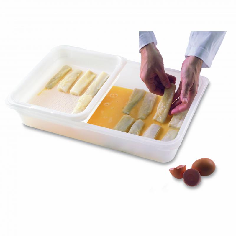 This useful item presented by Araven is for flouring and breadcrumbing. In addition, thanks to its versatility, it can be used as a strainer or for macerating food, or simply as a GastroNorm storage container.