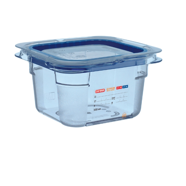 The GN 1/6 h150mm – 6″ 1,9l./2 qt- airtight containers BPA Free with lids are conceived and designed for catering professionals. The GastroNorm size containers have integrated traceability labels, they help comply with the health and hygiene regulation, they are totally transparent to quickly identify the food they contain. Their bi-injection moulded lid with rubber seal ensures maximum protection of foodstuff even in large containers.