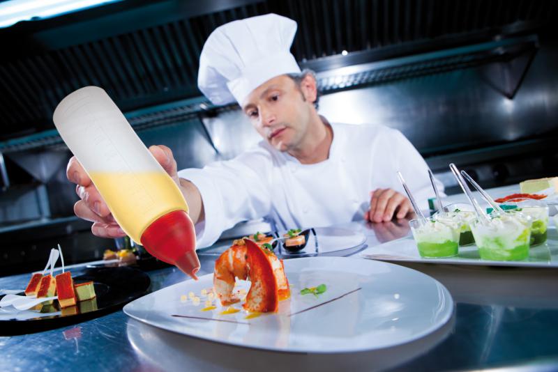 Non drip white 50 cl./ 17oz Sauce dispenser is ideal for all kinds of dressings, whatever their consistency, and for oils, sauces, reductions, syrups… They enable clean, precise decoration of a dish, to dress a salad with just the right amount or to use for any other type of preparations. Keep a wide variety of dressings on hand, in a totally safe manner.