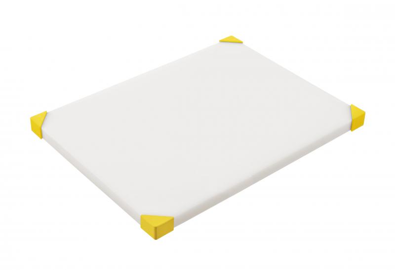 The coloured corner of the board identifies the type of food to be handled. The Araven Cutting Board has permanent coloured corners, which allow these work surfaces to be differentiated according to food groups to be handled, thus avoiding cross-contamination. This differentiation is particularly important between raw and processed foods.