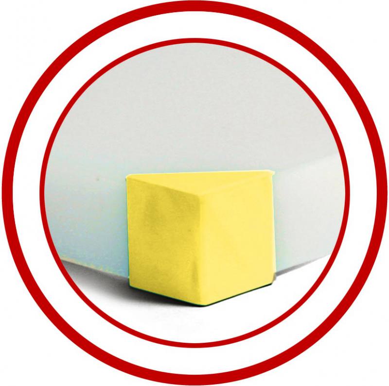 An Araven cutting board sits correctly in the work surface thanks to its permanent corners made of injected rubber. These supports stop the board from sliding on the work surface, providing greater safety in the work processes.