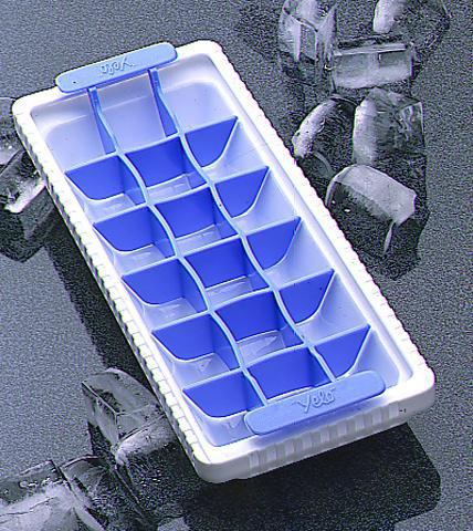 Ice-cube tray. Due to the design of the tray one can be stacked on top of another in the freezer. The ice-tray has two parts to make it easier to remove the ice-cubes when serving them. The ice-cubes have rounded corners so they are easier to remove from the mould when frozen. Can be washed in dishwasher.