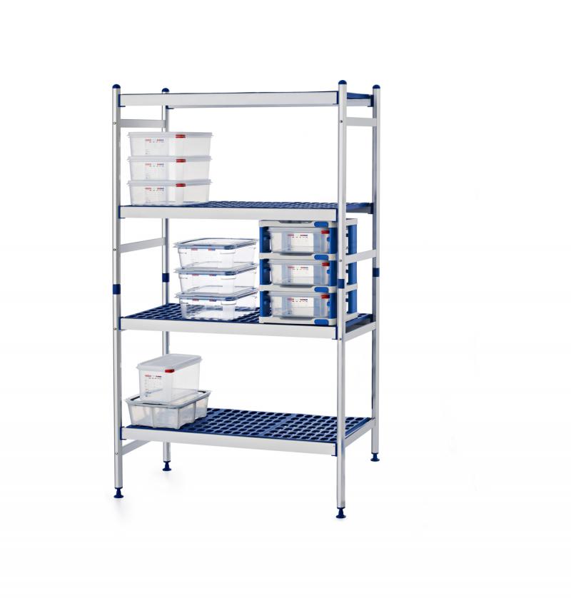 La estantería fija Araven está diseñada en base a las recomendaciones establecidas por el Código Internacional de buenas prácticas en materia de higiene y sanidad alimentarias CODEX ALIMENTARIUS. Idónea para incorporarse en cuántos programas y planes de autocontrol APPCC/HACCP que se lleven a cabo en los establecimientos que manejen producto alimentario. En su diseño se han tenido en cuenta criterios de Seguridad Alimentaria e higiene. La calidad de los materiales utilizados (PP y aluminio anodizado) inalterables en condiciones de humedad y completamente aptos para su uso en los ámbitos descritos. Sus baldas perforadas, fabricadas en polipropileno, favorecen la recirculación del aire y se pueden desmontar para su lavado en el lavavajillas evitando la potencial acumulación de restos en las zonas en contacto con contenedores y otros envases de alimentos.