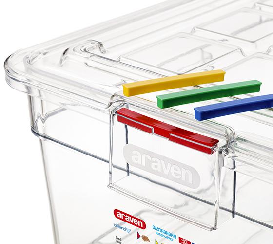 Le système d’identificaton de couleur est placé sur la base et permet de réduire le risque de contamination croisée ainsi que d’identifier le type d’aliment qui est conservé dans le conteneur.