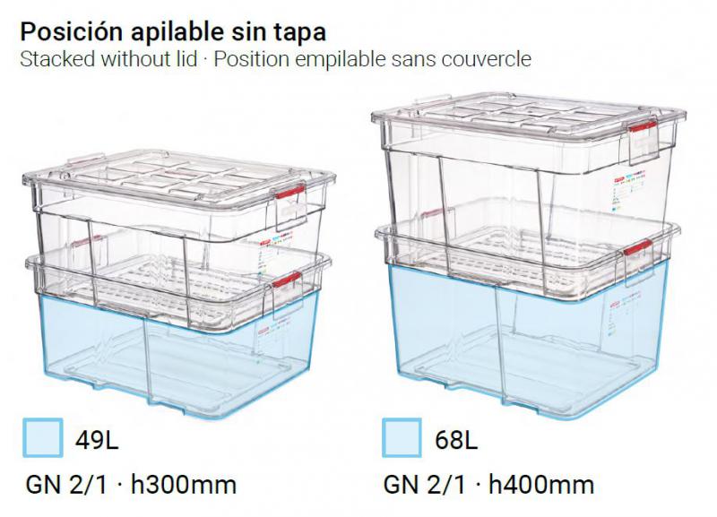 Les Bacs GN 2/1 90L. permettent le stockage et la conservation de grands volumes d’aliments. Par ailleurs, les versions à fond perforé sont optimales pour les processus de décongélation.