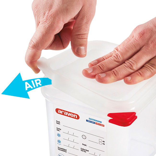 Par ailleurs, les nouvelles boîtes hermétiques GastroNorm d’Araven incorporent de nouveaux colorclip destinés à la gestion des aliments ainsi que des améliorations de leur étiquette de traçabilité IML