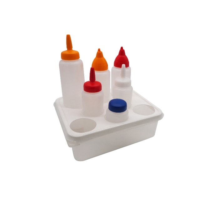 L’organisateur de doseurs GN 1/2 permet de garder la zone de manipulation en ordre. En ajoutant de l’eau et des glaçons ou de l’eau chaude, permet de conserver les sauces des doseurs à la température souhaitée. Facilite le transport jusqu’au lieu de conservation.