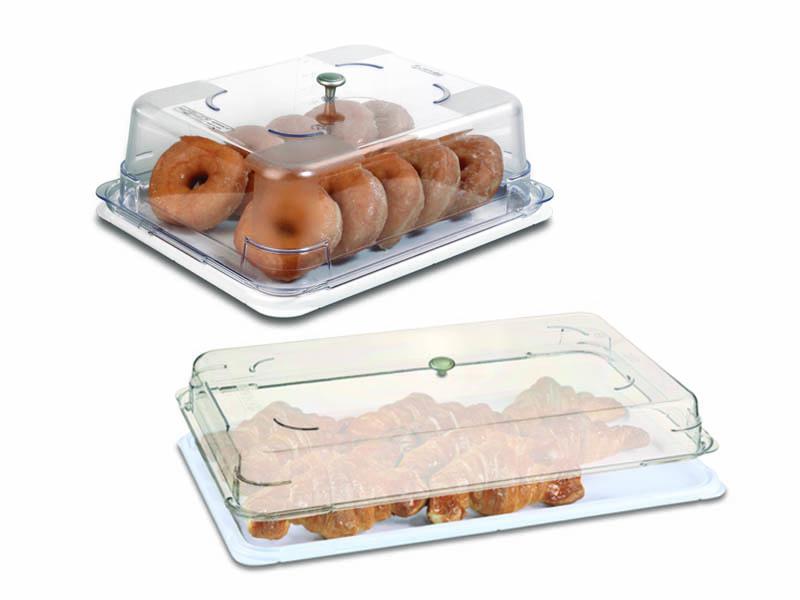 Las expovitrinas Araven GN 1/2 y GN 1/1 cuentan con bandejas y campanas de protección para pasar de exposición a conservación en un solo paso. (basta con colocar la tapa). La Expovitrina diseñada para alimentos de mayor volumen con campana transparente para una rápida visualización del contenido y con pomo metálico inoxidable para facilitar su uso.