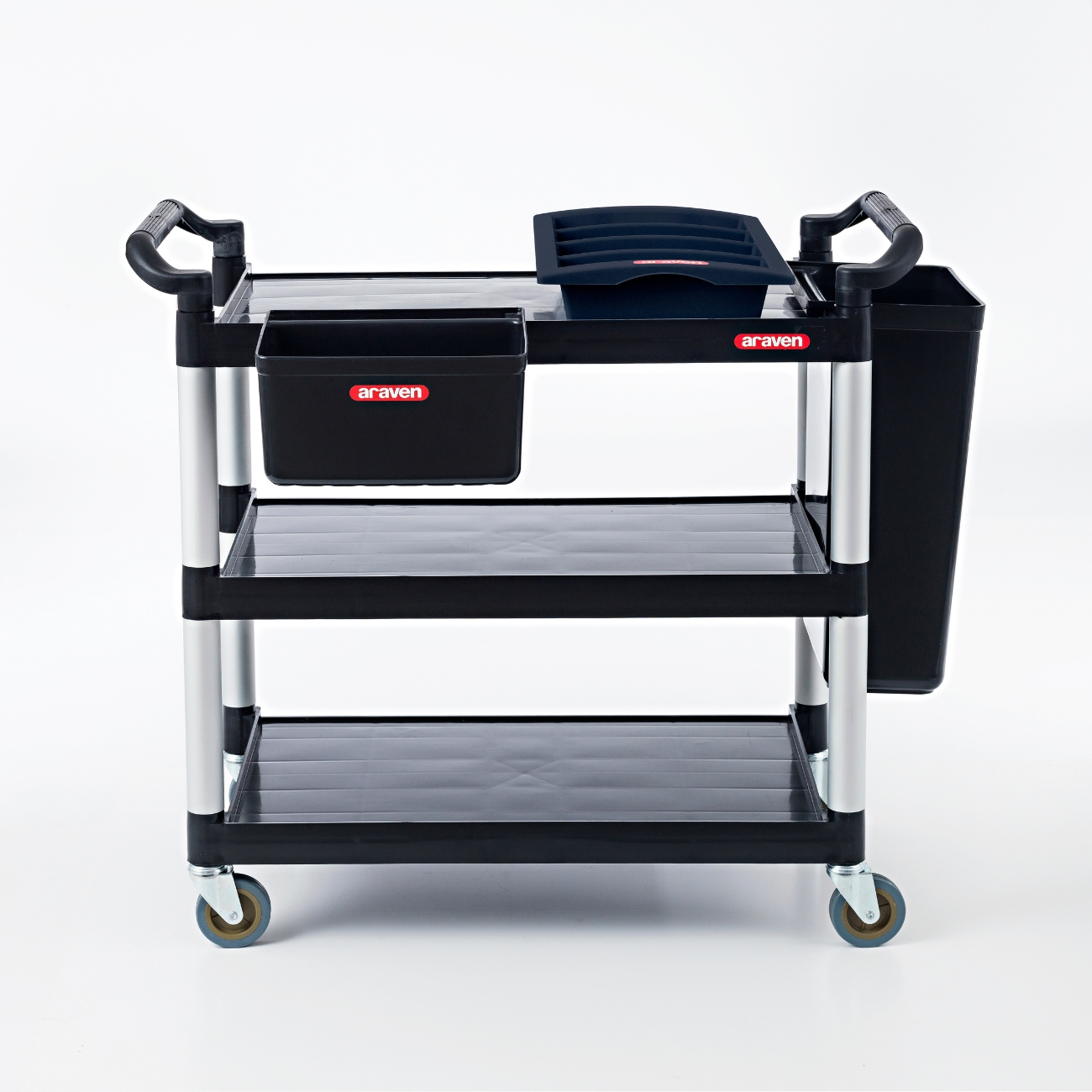 Sirve para transportar útiles y enseres necesarios para el servicio, facilita al personal de sala el trabajo en el montaje, servicio y desmontaje de mesas.