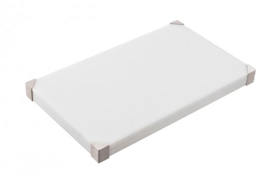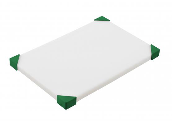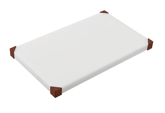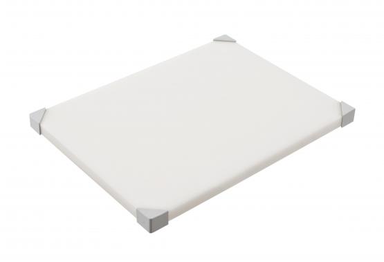 La Tabla de Corte Araven asienta correctamente sobre las superficies de trabajo gracias a sus esquinas permanentes de caucho sobreinyectado. Estos apoyos impiden a la tabla deslizarse sobre estas superficies aportando una mayor seguridad en estos procesos de trabajo.