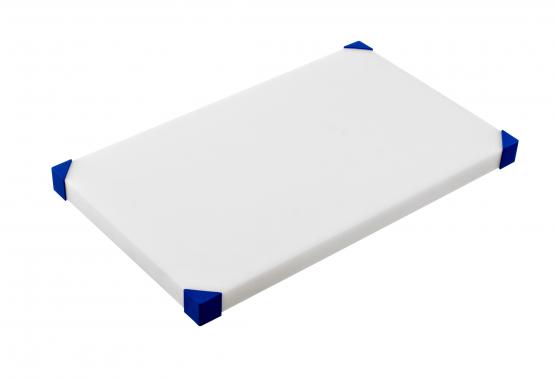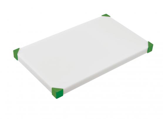 La esquina de color de la tabla identifica el tipo de alimento a manipular. La Tabla de Corte Araven tiene unas esquinas de color permanentes, que permiten diferenciar estas superficies de trabajo según grupos de alimentos a manipular evitando así la contaminación cruzada. En especial, esta diferenciación tiene mayor importancia entre alimentos crudos y elaborados.