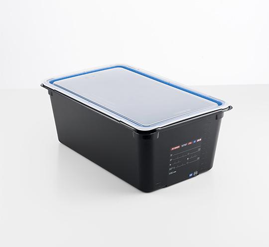 Las tapas hermeticas GastroNorm 1/1 son de bi-inyección con junta de caucho asegura la máxima protección de los alimentos incluso en cubetas grandes.